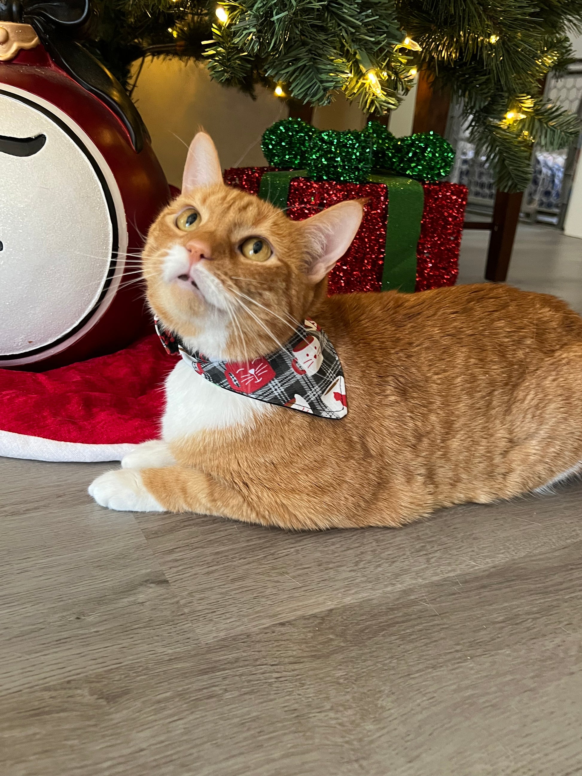 Keep your tea warm and your style cooler with the Purr-tea Cozy Bandana. This unique bandana features a playful cat and pawprint design, complete with velcro fasteners. Perfect for snuggling up with a mug on snowy days. (Cat Not Included 😃)